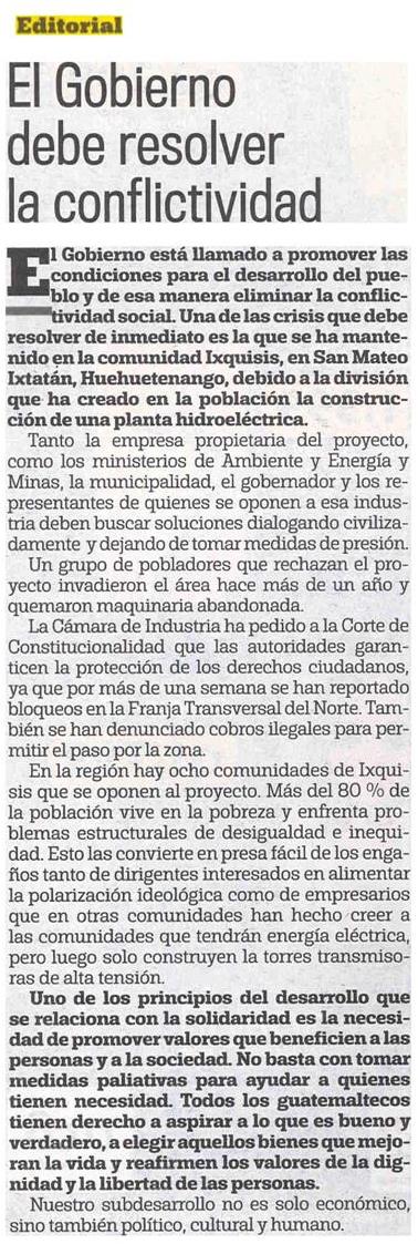 El Gobierno debe resolver la conflictividad Posted on 2 octubre, 2018Categories Columnas de Opinión Nuestro Diario, página 12 El Gobierno está llamado a promover las condiciones para el desarrollo del pueblo y de esa manera eliminar la conflictividad social. Etiquetas: Prensa