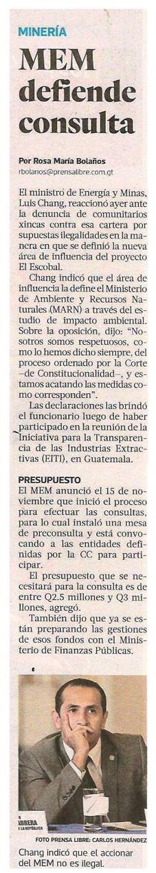 MEM defiende consulta Posted on 21 noviembre, 2018Categories Noticias Nacionales Prensa Libre, página 12 […] luego de haber participado en la reunión de la «Iniciativa para la Transparencia de las Industrias Extractivas (EITI), en Guatemala. Etiquetas: Prensa